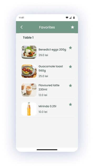 Customers add dishes to a favorites list and show it to the waiter, ensuring fast and efficient order processing.